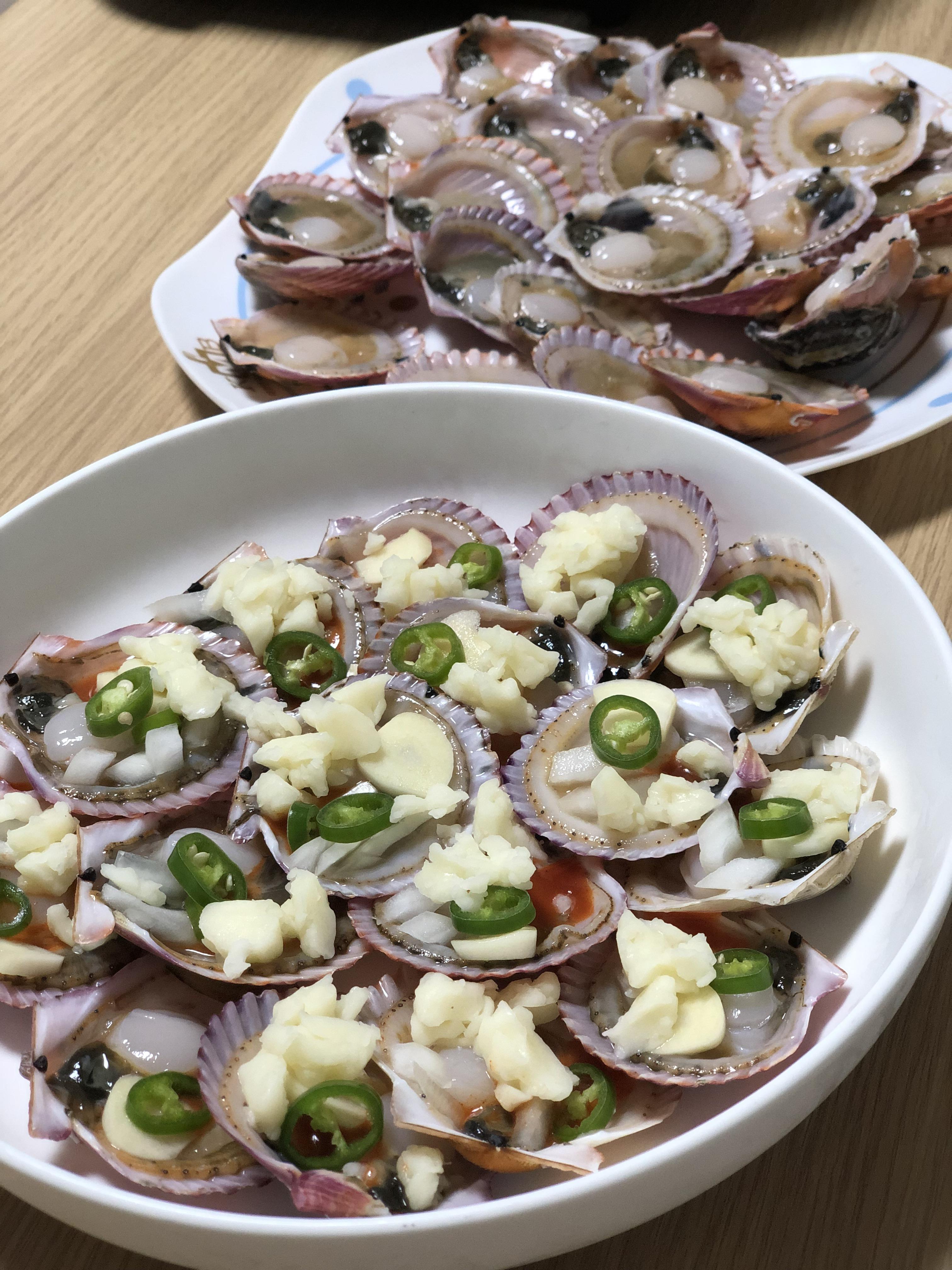 통통하게 익은 가리비와 살짝 끓여진 초장, 땡초, 마늘의 향