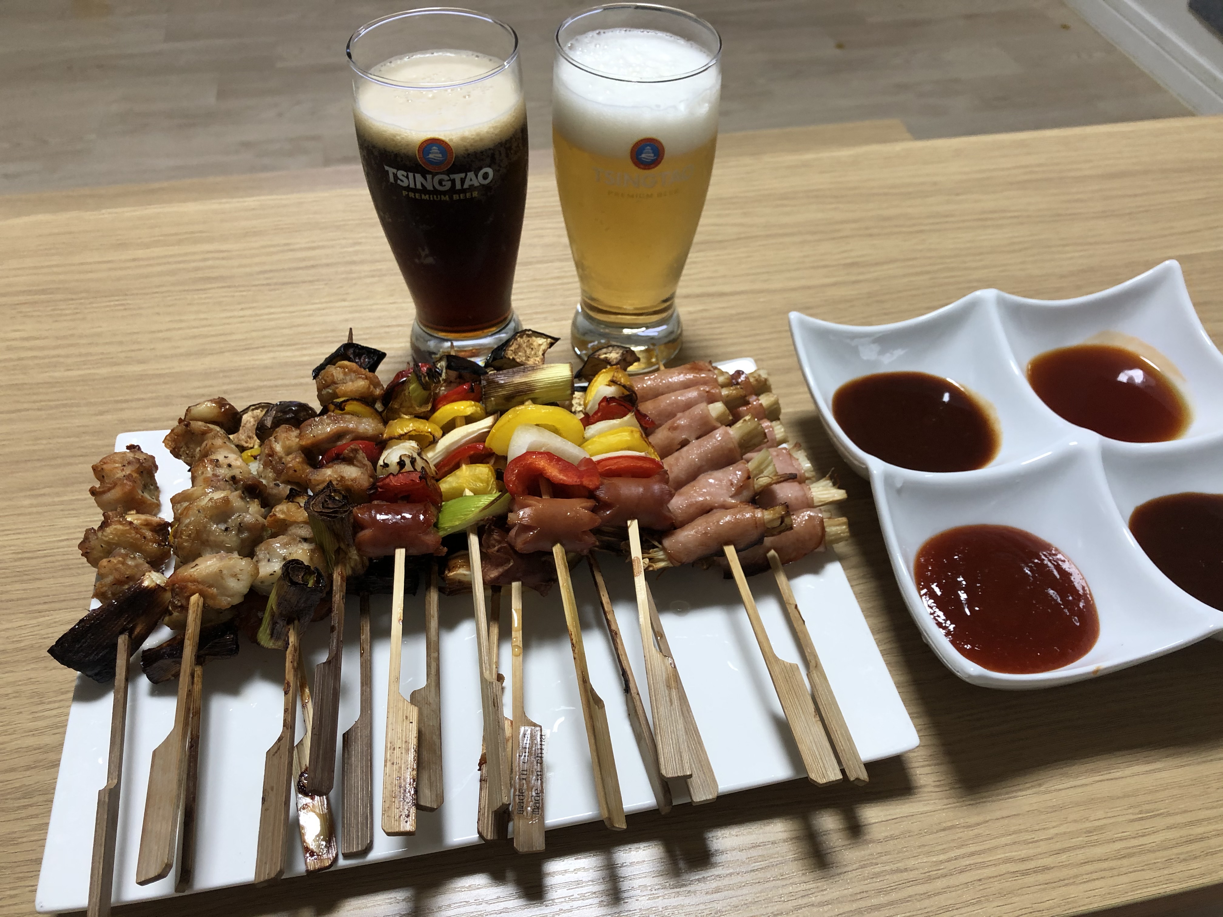 일단 꼬치들을 뒤집어서 반대편을 좀 구워줍니다.