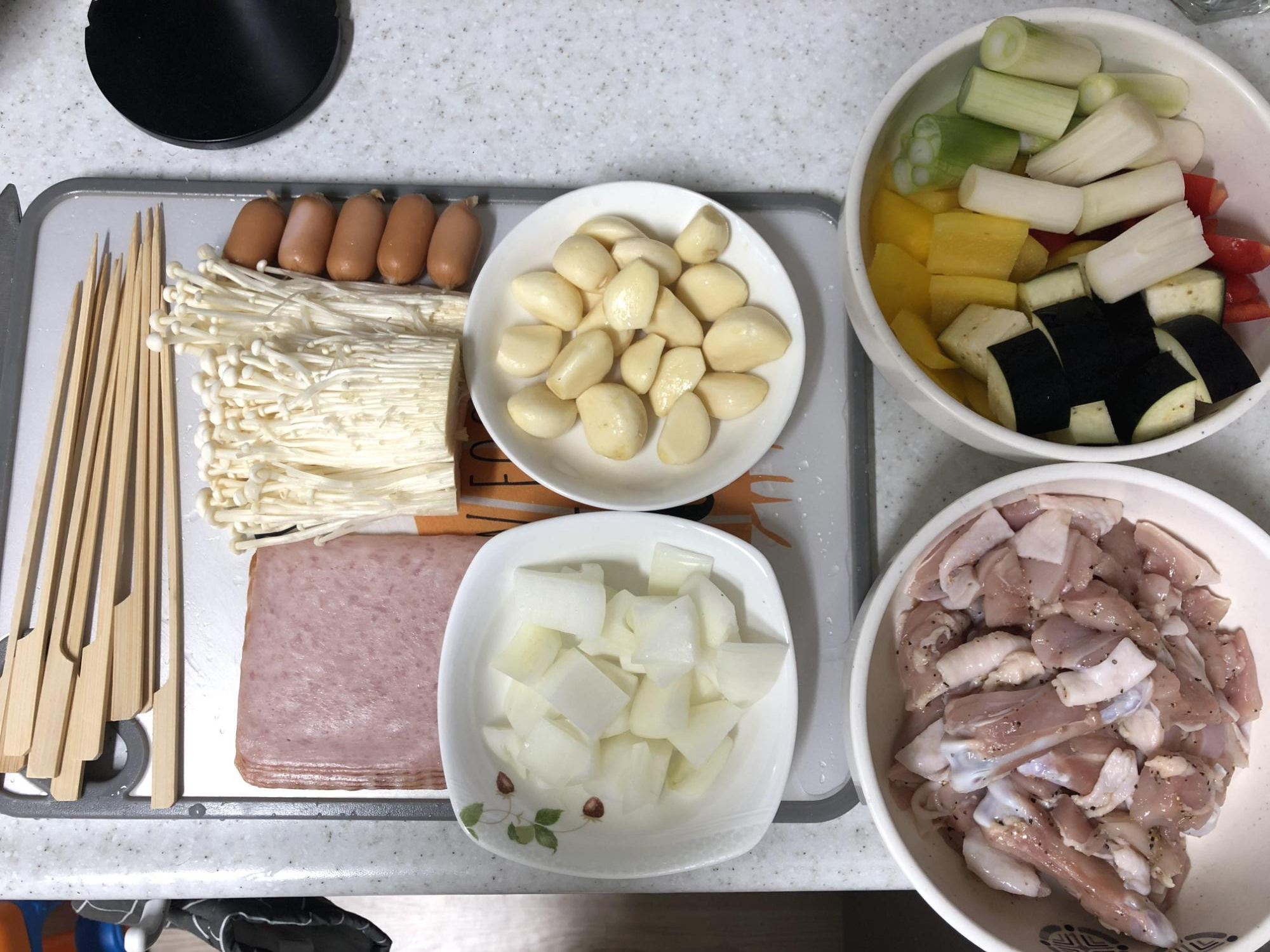 꼭 필요한 재료 - 꼬챙이들, 끼울수있고 먹을수있는것