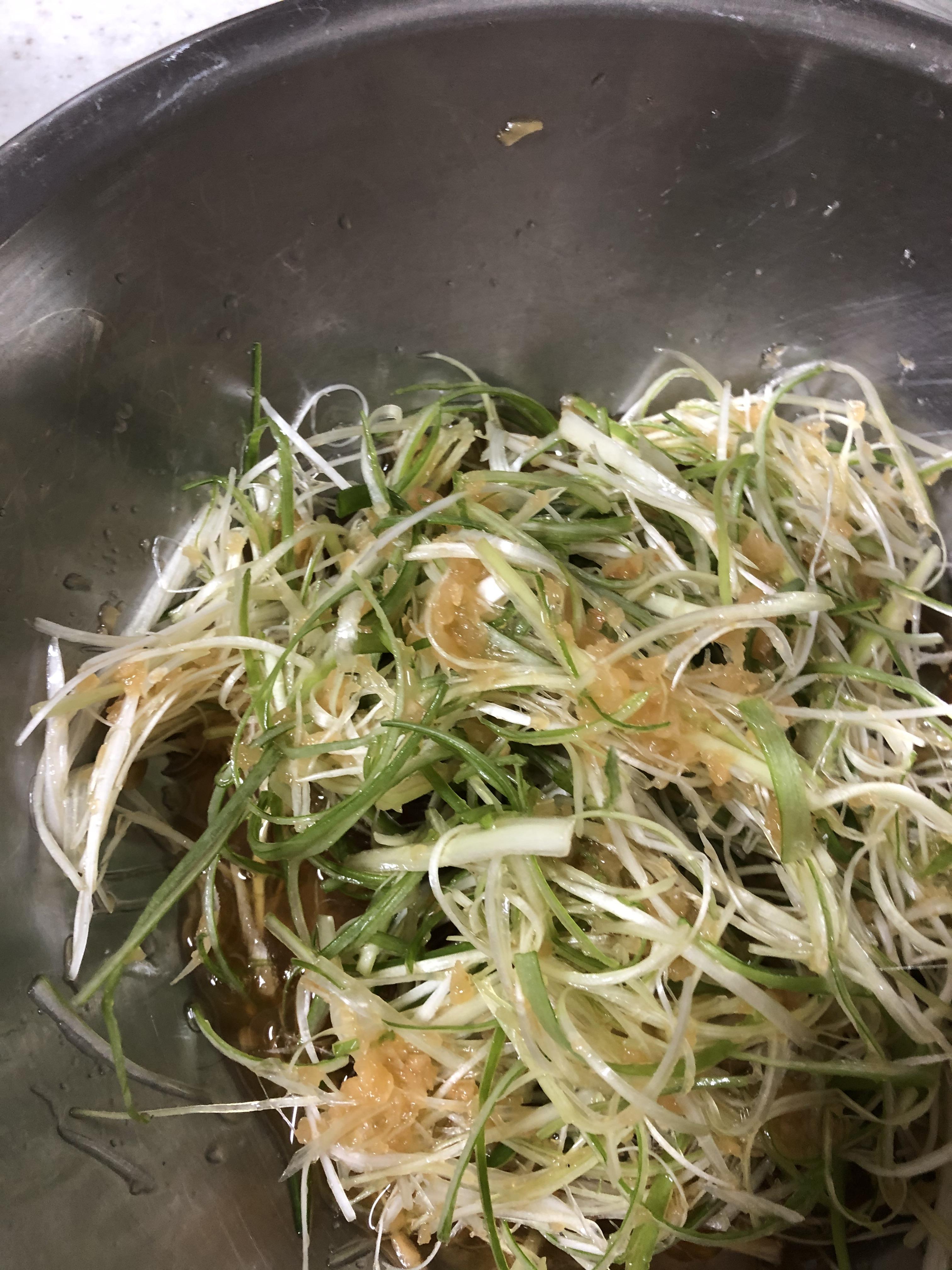 파채에 알싸한 마늘소스를 붓고 섞어줍니다.