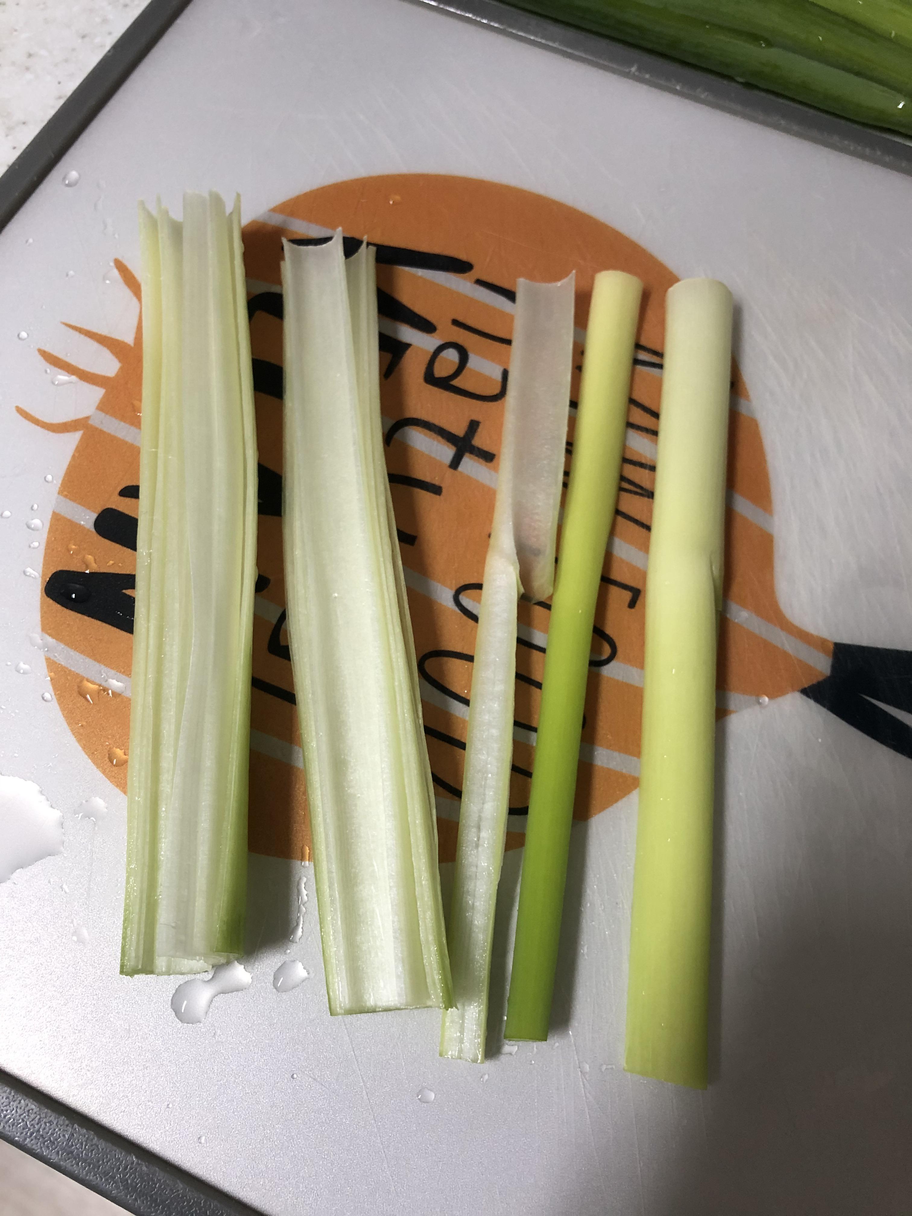 파채를 만들기 위해 대파를 깨끗하게 씻어서