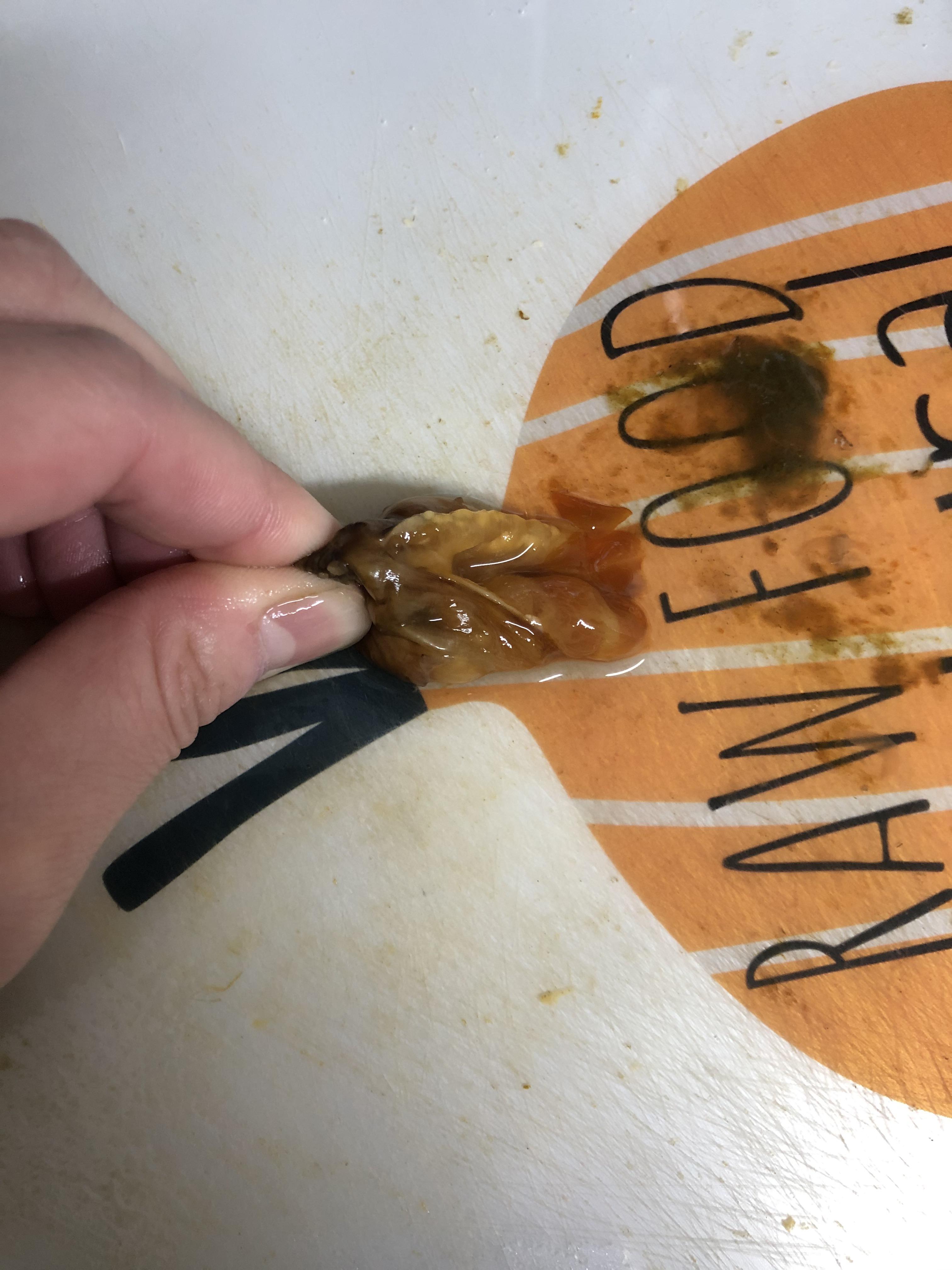 미더덕 머리와 껍질이 분리되면서 미더덕 살이 나왔습니다.